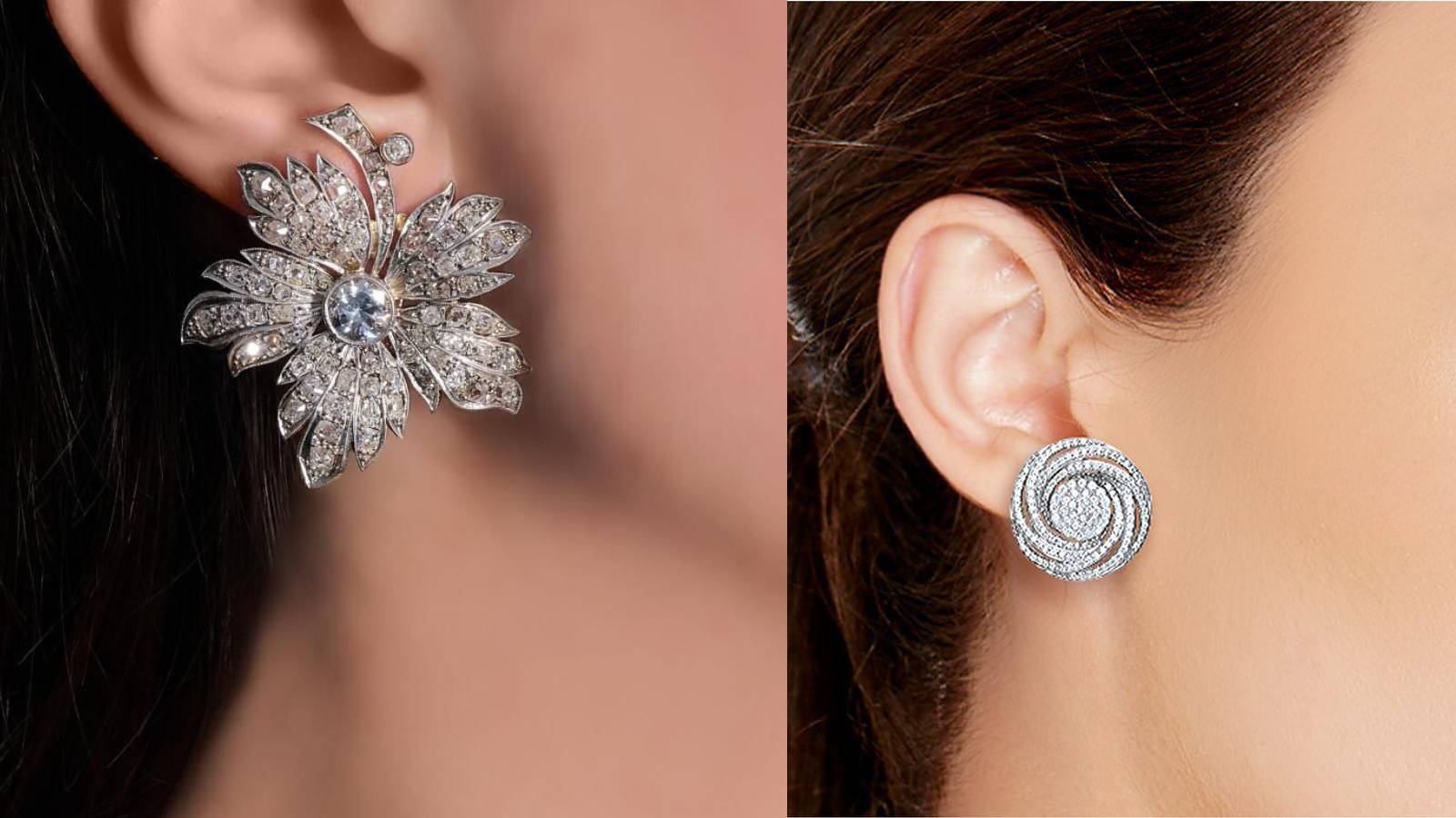 जैसे प्लांट में छोटी-छोटी पत्तियां लगी होती हैं, ठीक वैसे ही डिजाइन के अमेरिकन डायमंड स्टड्स भी आपको मिल जाएंगे। यह लंबे या फिर हाफ सर्कल डिजाइन में हो सकते हैं। अगर आप वेस्टर्न आउटफिट पहन रही हैं, तो ऐसे अमेरिकन डायमंड स्टड्स आपके कानों में बेहद खूबसूरत लगेंगे।
