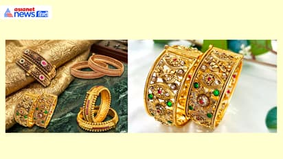 मॉडर्न जमाने की हसीना दिखना चाहती हैं तो गणगौण पूजा के लिए गुलाब की नक्काशी और उभरी डिजाइन वाले फ्लोरल कड़े खरीदें। यह लहंगे के साथ एक्सट्रा और वाइब्रेंट वाइब देते हैं। यह डिजाइन उन महिलाओं के लिए बेस्ट है, जो बोल्ड स्टेटमेंट चाहती हैं।