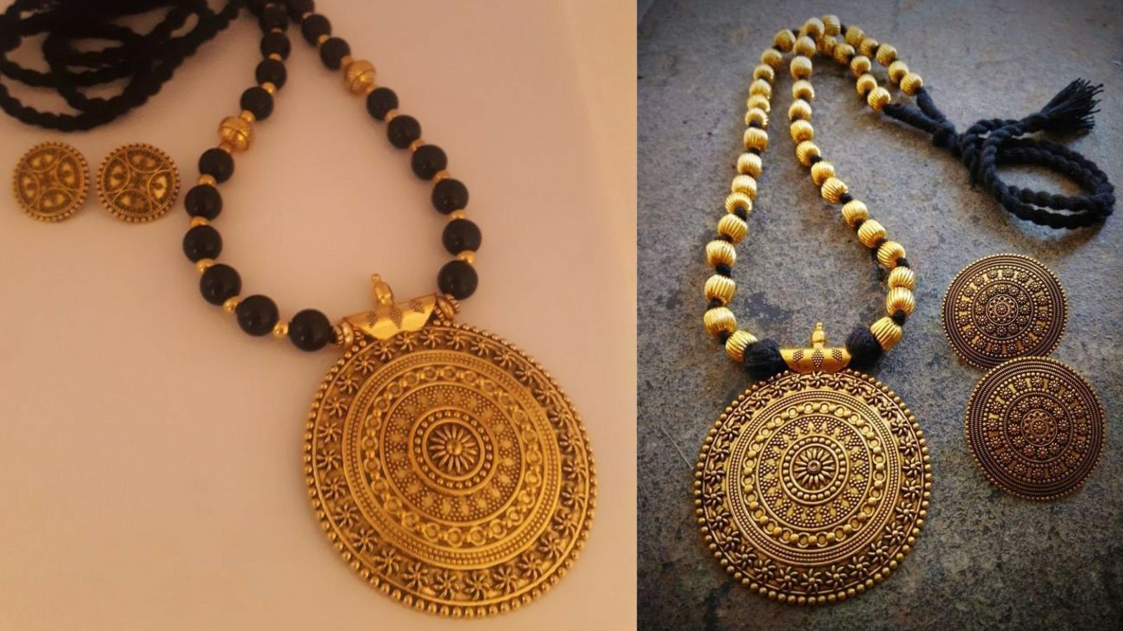 हैवी पेंडेंट के साथ इस तरह के काले और सुनहरे मोती के साथ मंगलसूत्र की ये डिजाइन न सिर्फ मंगलसूत्र की तरह लगेगी, बल्कि ये गले में पहनने के बाद नेकलेस की तरह भी लगेगी। दरअसल इसका पेंडेंट और काले एवं सुनहरे मोती का काम इसे खूबसूरत लुक दे रहा है।