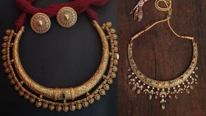 Fancy Hasli Design for Karwa Chauth: करवा चौथ की तैयारी लगभग लोगों ने शुरू कर दी है, ऐसे में अगर आपने भी शुरू कर दी है, लेकिन जूलरी में क्या पहनें ये सोच रहे हैं, तो ये लेख सिर्फ आपके लिए ही है। करवा चौथ में महिलाओं का रेड साड़ी, सूट, लहंगा या फिर दूसरा एथनिक आउटफिट पहनना तो मेंडेटरी है। ऐसे में अगर आप भी लाल साड़ी पहनने वाली हैं, तो इस बार गले में गोल्ड या चोकर जूलरी नहीं पहनें हसली की ये शानदार डिजाइन। हसली नेकलेस दिखने में ही नहीं पहनने के बाद बहुत खूबसूरत और क्लासी लगेगी। आर्टिफिशियल हसली के ये पैटर्न और डिजाइन आपको 1000 रुपये के अंदर मिल जाएगी और पहनने में भी बहुत कमाल की लगेगी।