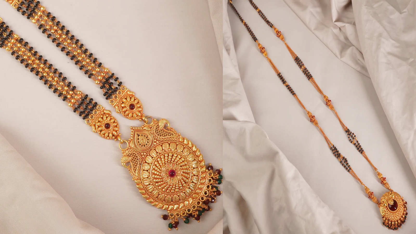 Trendy Geru Mangalsutra Designs: अब महिलाओं की सोच मंगलसूत्र को लेकर काफी बदल चुकी है। पहले जहां एक जैसे पारंपरिक डिजाइन ही पहने जाते थे, अब महिलाएं अपने ड्रेस और मूड के हिसाब से मंगलसूत्र चुनना पसंद करती हैं। इसी ट्रेंड को ध्यान में रखते हुए हम आपके लिए लेकर आए हैं गेरू मंगलसूत्र डिजाइंस, जो ट्रेडिशनल लुक के साथ हैवी डिजाइन में आते हैं। ये डिजाइन सोने में काफी महंगे पड़ सकते हैं, लेकिन आप चाहें तो इन्हें आर्टिफिशियल ज्वेलरी मार्केट से 2000 रुपए के अंदर भी खरीद सकती हैं। आइए, देखते हैं कुछ खूबसूरत और रॉयल डिजाइन।
