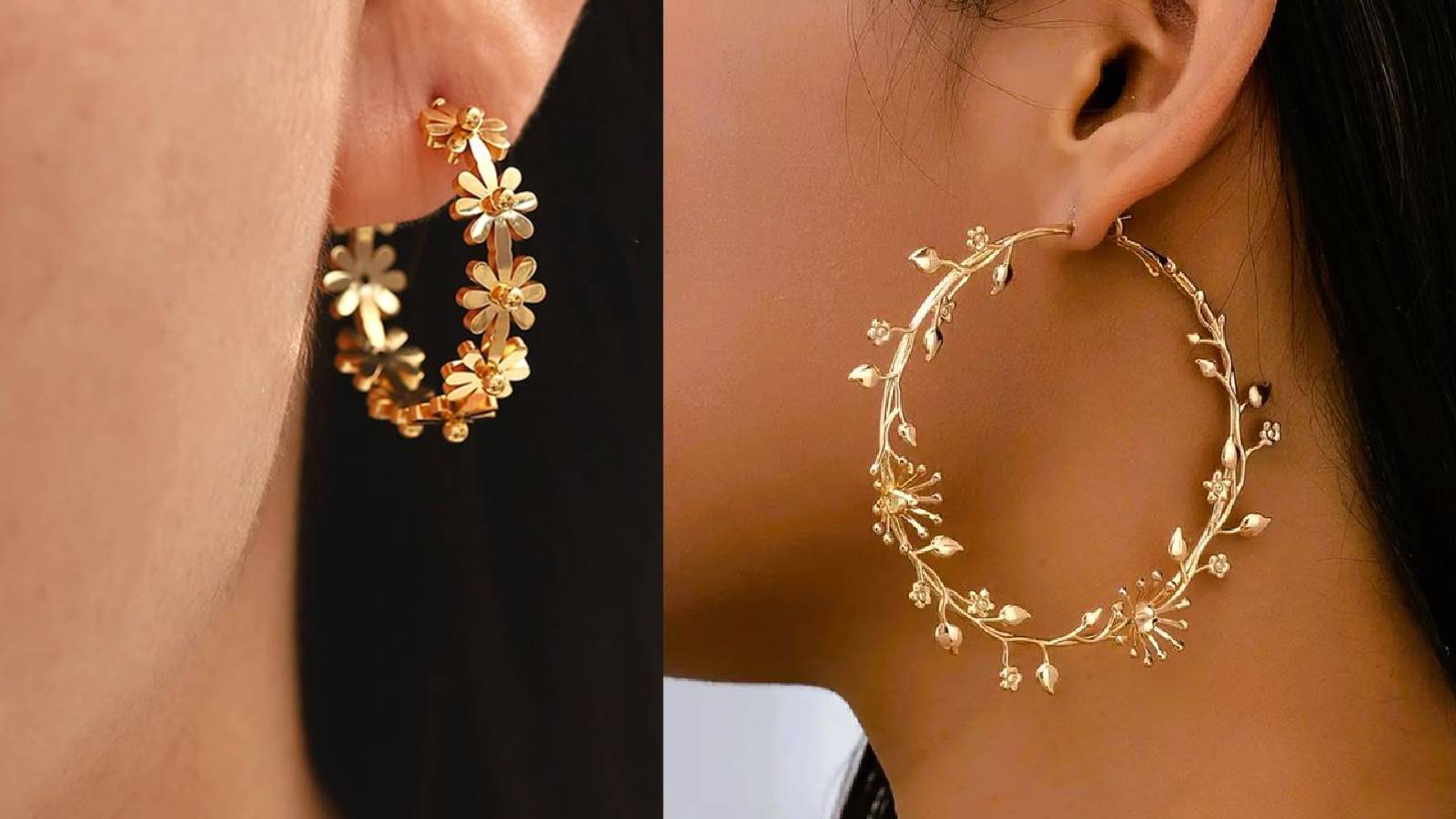 फ्लोरल डिजाइन हूप्स में आपको अर्धचंद्रआकार से लेकर हॉलो डिजाइन तक मिल जाएगी। अगर आपको फ्लोरल सर्कल डिजाइन पसंद आती है तो कटवर्क गोल्डन हूप्स भी खरीद सकती हैं। साथ में लटकन वाले फ्लोरल इयररिंग्स भी आजकल खूब पसंद किए जा रहे हैं। आपको सुनार के यहां जाने से पहले ऑनलाइन हूप्स की डिफरेंट डिजाइन चुननी चाहिए। पसंद आने पर सुनार को डिजाइन दिखाएं और फिर उनसे कस्टमाइड कराएं। आपको 4 से 5 ग्राम की हूप 50 हजार के अंदर मिल जाएंगी।