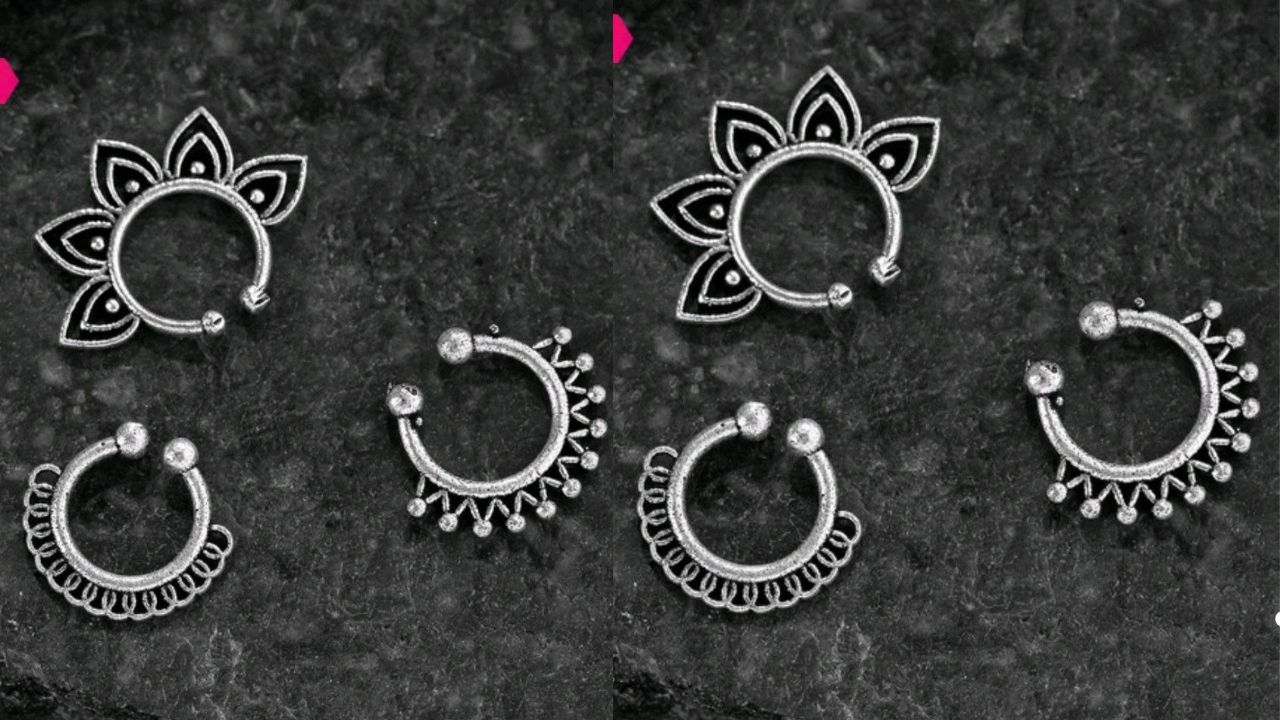 Latest Oxidized Nose Ring Designs for Festive Look: ऑक्सीडाइज जूलरी लोगों को काफी पसंद आती है, बात चाहे झुमका की हो नेकलेस की हो, बैंगल की हो या फिर नोज रिंग की इंडिया में आजकल लोगों को ऑक्सीडाइज जूलरी एथनिक और वेस्टर्न लुक के लिए काफी ज्यादा पसंद आ रही है। ऐसे में अगर आप भी ऑक्सीडाइज नोज रिंग पसंद है और आने वाले फेस्टिवल में किसी आउटफिट के साथ पहनने के बारे में सोच रही हैं, तो यहां हम आपके लिए लाए हैं, कुछ ट्रेंडी डिजाइन। ऑक्सीडाइज नोज रिंग की ये पीस काफी एलिगेंट, सिंपल और स्टाइलिश है, जिसे आप अपने बजट में खरीद सकती हैं। ये सारे डिजाइन आपके खुबसुरती को बढ़ा देंगे और फेस्टिवल में हर आउटफिट के साथ क्लासी लगेंगे।