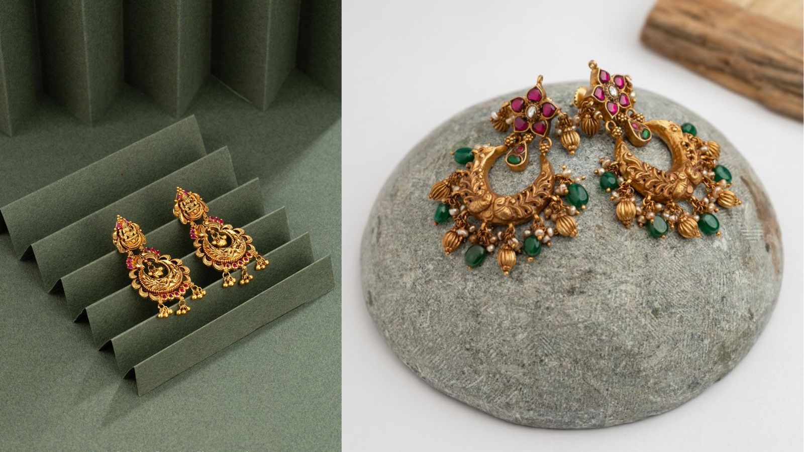 क्लासिक लुक में घोलना है चार्म तो पहनें साउथ इंडिय टेंपल पैटर्न के इयररिंग, सावन, राखी और तीज में दिखेंगी सबसे सुंदर। आजकल फ्यूजन फैशन का ट्रेंड चल रहा है, जिसमें अगर आप कुछ यूनिक पहनना चाहते हैं, जो परंपरा की खुशबू और रॉयल फील दोनों दे, तो साउथ इंडियन टेंपल इयररिंग की ये डिजाइन बढ़ाएगी आपकी सुंदरता। टेंपल डिजाइन में झुमका की ये डिजाइन न सिर्फ जूलरी पीस है बल्कि कला, संस्कृति और सुंदरता की पहचान है। लक्ष्मी, गणेश, याली और अन्य देवी-देवताओं की नक्काशी में सजे ये इयररिंग आपकी सुंदरता में चार चांद लगा देगी। इयररिंग के इन डिजाइन में झुलती झुलनी, मोतियां इसे ट्रेडिशनल और फेस्टिव लुक को अट्रैक्टिव बनाएगी। टेंपल पैटर्न में इयररिंग की ये डिजाइन सोने की चमक हो या फिर एंटीक लुक की सादगी दोनों ही वर्जन में मिल जाएगी।
