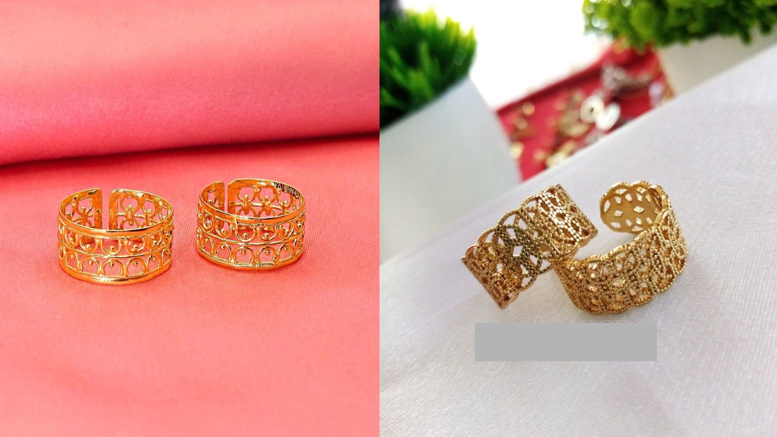 सावन का महीना शुरु हो चुका है और यह सिर्फ शिव जी की पूजा का ही नहीं, हरियाली और महिलाओं के साज-श्रृंगार का भी है। सावन का महीना महिलाओं के लिए बाकी साल भर के महीने से अलग होता है, इसमें राखी, हरियाली तीज और सावन सोमवारी के साथ-साथ महिलाओं का श्रावणी उत्सव भी होता है, जिसमें महिलाएं खूब तैयार होती हैं। महिलाएं इस पूरे महीने अपने एथनिक लुक को निखारती और संवारती हैं, ऐसे में आज हम आपके लिए जबरदस्त चीज लाए हैं, जिसे ज्यादातर महिलाएं नजरअंदाज कर देते हैं। जी हां, हम आपके लिए लाए हैं सुनहरे रंग के बिछिया के शानदार डिजाइन, जो आपके चांदी के पायल के साथ पांव को देंगे कंट्रास्ट लुक। गोल्डन बिछिया के ये मॉर्डन और स्टाइलिश डिजाइन, चांदी की ट्रेडिशनल पैटर्न के साथ बहुत जोरदार लगेगी और आपके लुक को खूबसूरत भी बनाएगी। तो चलिए आपके सावन के सभी खास त्योहारों के लिए देख लेते हैं, गोल्डन बिछिया की सुंदर डिजाइन।