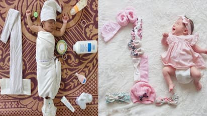 बच्चों के फोटोशूट में बैलून सबसे किफायती और फोटोजेनिक डेकोरेशन एलिमेंट होते हैं। कलर थीम में बेबी पिंक, स्काई ब्लू, वाइट या पेस्टल शेड्स चुनें। बैलून को बैकग्राउंड वॉल पर टेप या नेट के साथ लगाएं। एक-दो बैलून में 1 Month भी लिखवा सकते हैं।