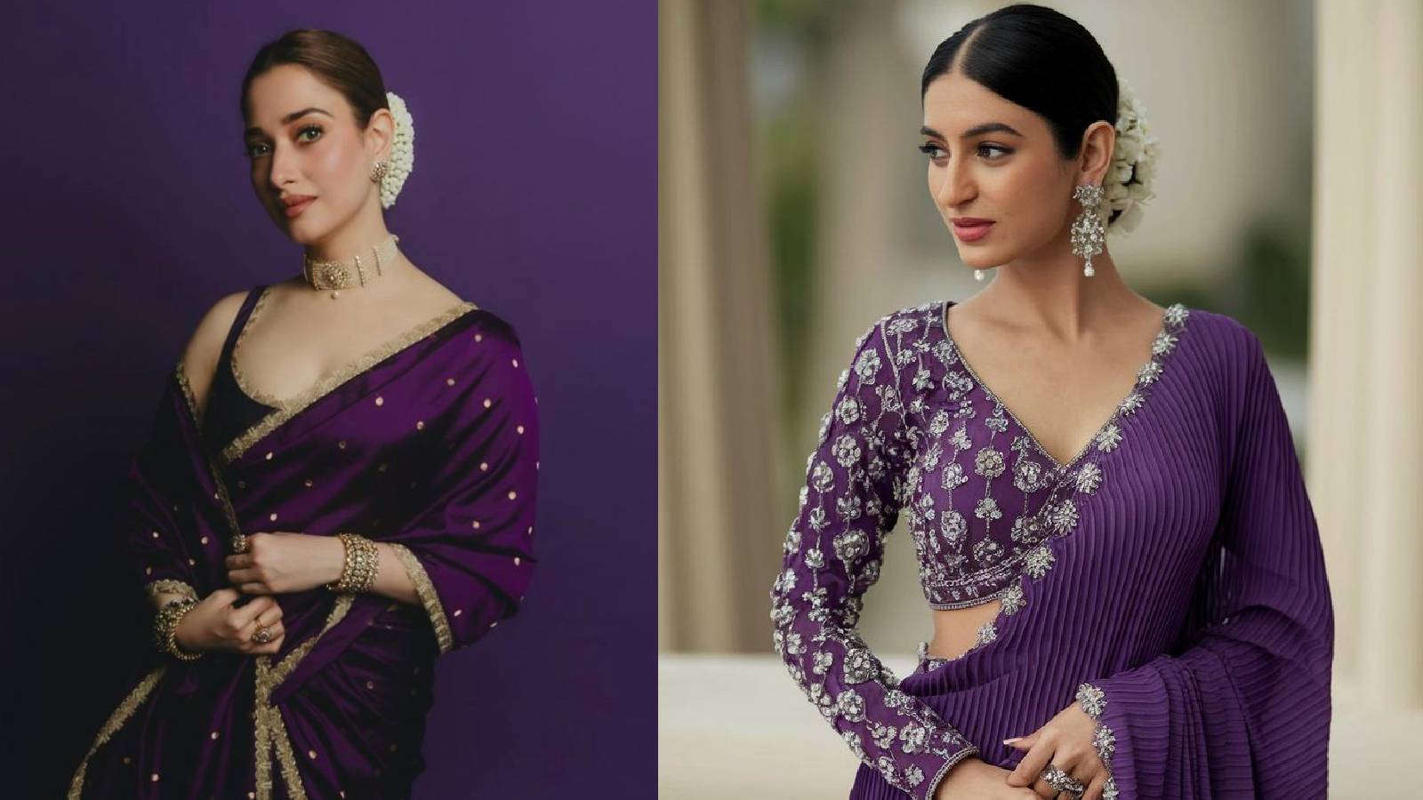 शादी या किसी खास फंक्शन में अगर आप साड़ी चुन रही हैं, तो अपने कॉम्प्लेक्शन के हिसाब से साड़ी का रंग चुनें। पर्पल रंग की साड़ियां गोरी रंगत पर जंचती हैं। आप गोटापट्टी बॉर्डर से लगाकर फ्लोरल डिजाइन की प्लीटेड पर्पल साड़ी शादी फंक्शन के लिए चुन सकती हैं।