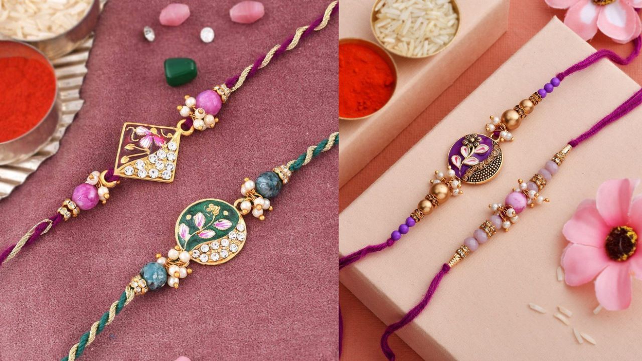 मीनाकारी स्टाइल में भाभी राखी की ये डिजाइन देखते ही पसंद आएगी। भाभी राखी की इस खूबसूरत पीस में बहुत ही शानदार तरीके से मीनाकारी का काम हुआ हो, जो आपकी भाभी के कलाई में खूब जचेगी। इस तरह के यूनिक राखी रॉयल और क्लासी लगते हैं, जिसे आप अपनी भाभी के लिए ले सकती।