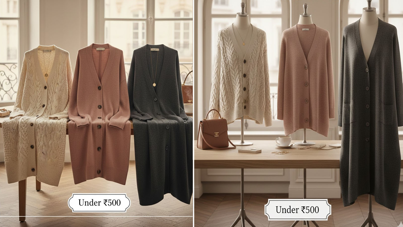 सर्दियां आते ही सबसे पहली जरूरत होती है एक ऐसा कार्डिगन जो गर्म भी रखे और स्टाइल भी ना बिगाड़े। लेकिन अगर आपका बजट 500 रुपये से कम है, तो टेंशन लेने की जरूरत बिल्कुल नहीं है। आजकल मार्केट और ऑनलाइन दोनों जगह इतने ट्रेंडी और टिकाऊ कार्डिगन अवेलेबल हैं कि छोटी सी रकम में भी आप बड़ा स्टाइल स्टेटमेंट बना सकती हैं। हल्की निटिंग वाले ये कार्डिगन ऑफिस से लेकर कॉलेज, मेड-इन-होम वियर से लेकर मार्केट विजिट, हर जगह पहनने में बेहद कम्फर्टेबल होते हैं। साथ ही, इनका लुक इतना क्लीन और एलिगेंट होता है कि इसे आप किसी भी कुर्ती, जींस या वन-पीस के साथ आसानी से स्टाइल कर सकती हैं। यहां देखें 5 डिजाइंस, जो आपको 500 के अंदर आसानी से मिल जाएंगे और हर एक आपके विंटर लुक को अलग शाइन देगा।