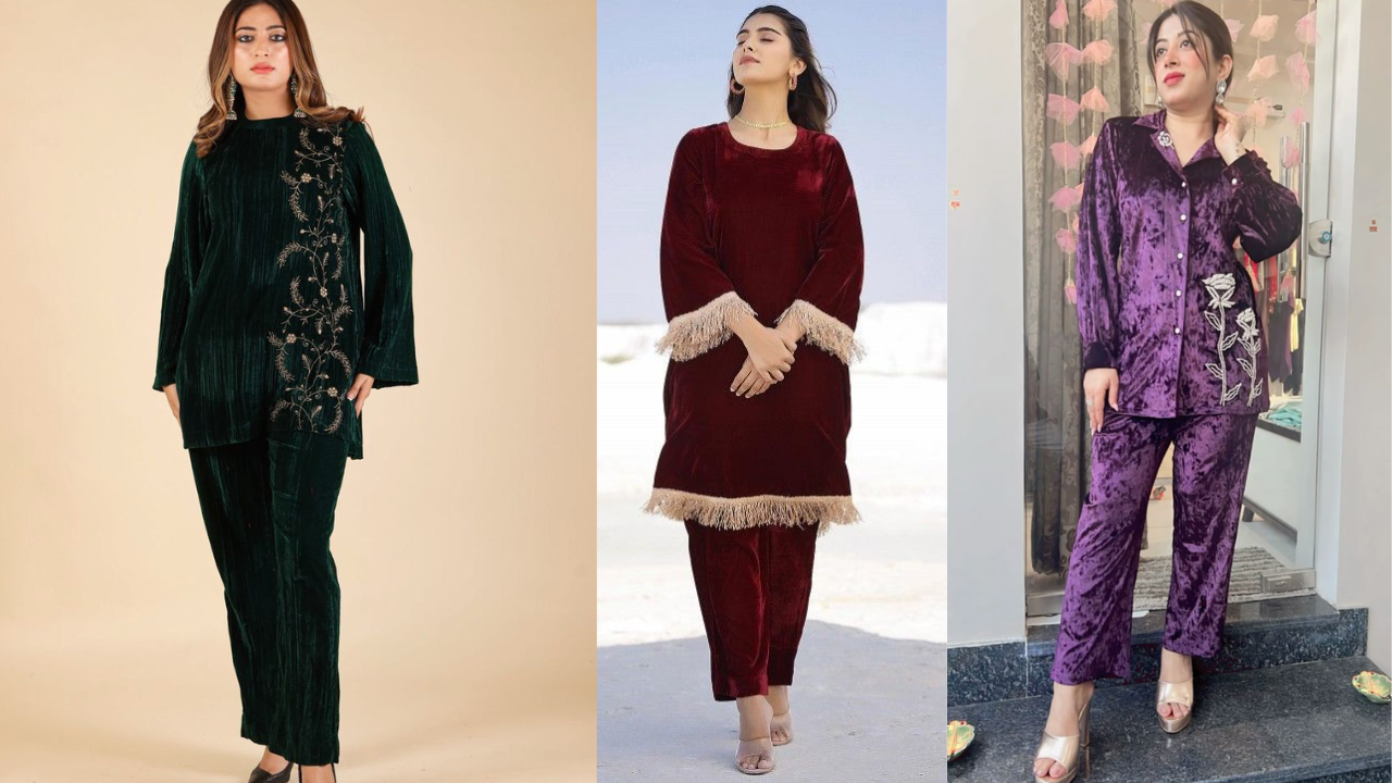 दुपट्टा से हटकर टू पीस शनील सलवार सूट घर और ऑफिस के लिए परफेक्ट च्वाइस हो सकते हैं। तस्वीर में तीन अलग-अलग तरह के डिजाइन दिखाए गए हैं, जो मुख्यता ट्रेडिशनल पाकिस्तानी स्टाइस कुर्ता से इंस्पायर्ड है। यहां पर जरी और धागों का महीन वर्क है। आप पोल्की या पर्ल ज्वेलरी के साथ शाही लुक दे सकती है। इन्हें रेडीमेड खरीदने से अच्छा आप शनील का कपड़ा लेकर टेलर भैया से स्टिच कराएं।