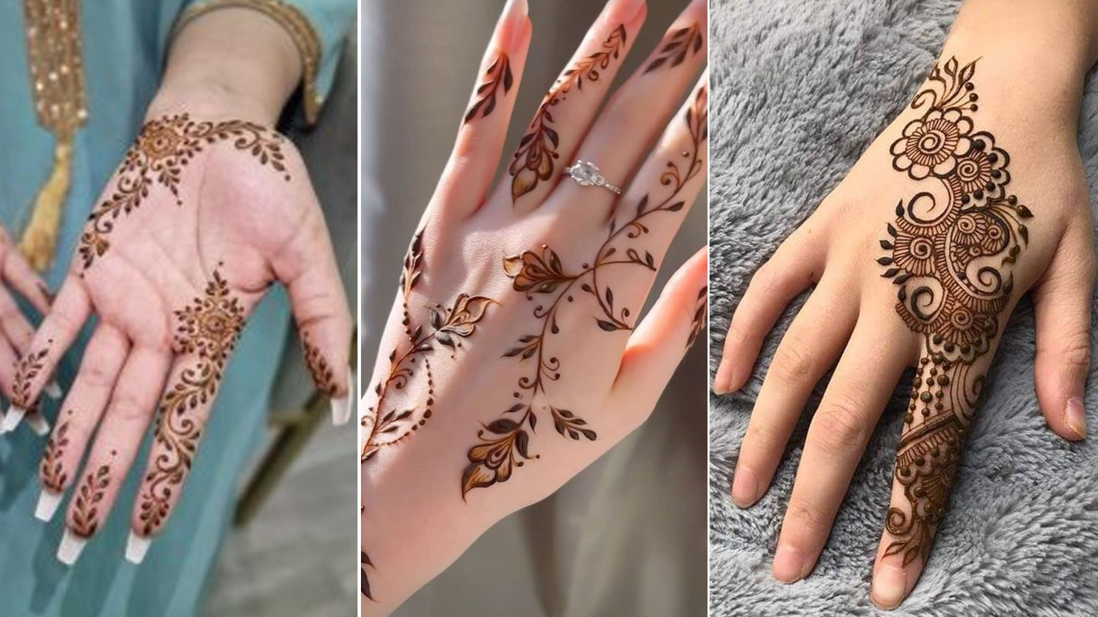 इस डिजाइन में कलाई से लेकर उंगलियों तक सिर्फ साइड में पतली स्ट्रिप बनाई जाती है। बीच की हथेली खाली रहती है, जिससे हाथ बहुत ही मॉडर्न और ट्रेंडी लगते हैं। यह डिज़ाइन खासकर कॉलेज गर्ल्स और यंगस्टर्स के बीच हिट है।
