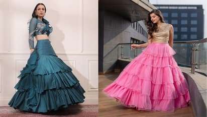 अगर आपके पास कोई प्लेन सिंपल सी जॉर्जेट की साड़ी है, तो इससे आप मल्टी लेयर लहंगा बनवा सकते हैं। इसके साथ हैवी ब्लाउज और ड्रेप बहुत खूबसूरत लगेगा और कोई अंदाजा भी नहीं लगा पाएगा कि यह आपने साड़ी से बनवाया है।