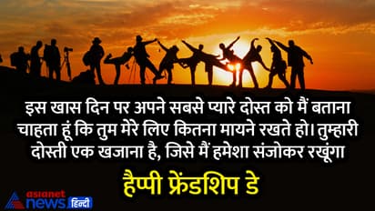 इस खास दिन पर अपने सबसे प्यारे दोस्त को मैं बताना चाहता हूं कि तुम मेरे लिए कितना मायने रखते हो। तुम्हारी दोस्ती एक खजाना है, जिसे मैं हमेशा संजोकर रखूंगा। हैप्पी फ्रेंडशिप डे!