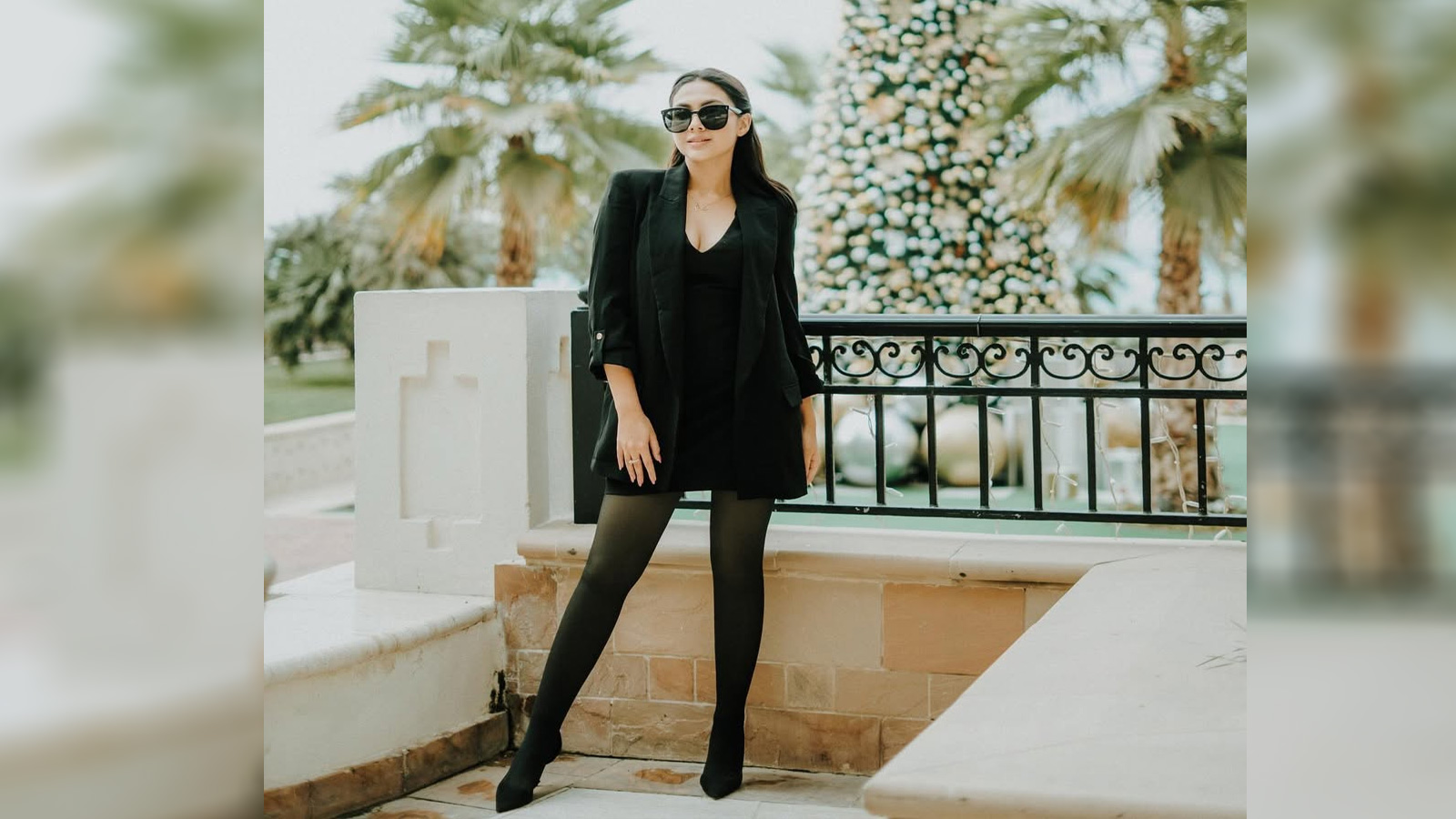 रीम शेख ब्लैक मिनी ड्रेस में एलिगेंट और स्टाइलिश लग रही हैं। ड्रेस का नेकलाइन डीप रखा गया है, जो थोड़ा ग्लैम टच देता दिख रहा है। ड्रेस के ऊपर एक्ट्रेस ने ब्लैक ब्लेजर स्टाइल किया है। थाई-हाई ब्लैक स्टॉकिंग्स के साथ यह लुक और भी परफेक्ट लग रहा है। ब्लैक ड्रेस के साथ रीम ने ब्लैक सनग्लासेस स्टाइल किया है। डे आउटिंग के लिए आप इस लुक को रिक्रिएट कर सकती हैं।