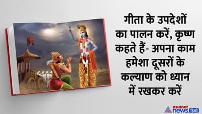 गीता के उपदेशों का पालन करें, कृष्ण कहते हैं- अपना काम हमेशा दूसरों के कल्याण को ध्यान में रखकर करें।