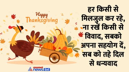 Happy Thanksgiving day: हर साल नवंबर के चौथे गुरुवार को अमेरिका समेत दुनिया भर के कई देशों में थैंक्सगिविंग डे मनाया जाता है। इस दिन लोग एक दूसरे का शुक्रिया अदा करते हैं और आने वाले साल के लिए दुआ करते हैं। आप इन विशेज से सभी को थैंक्स कह सकते हैं