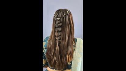 बालों में वॉल्यूम हैं तो ये हेयर स्टाइल जरूर ट्राई करें। सबसे बालों को एक हिस्सा लेते हुए बड़ी ब्रेड बनाकर हार्ट शेप लुक दे दें। अब वेवी पैट्रन पर तीन ब्रेड बनाकर खुला छोड़ दें। ये लंबे बालों पर बहुत खूबसूरत लगेगी।