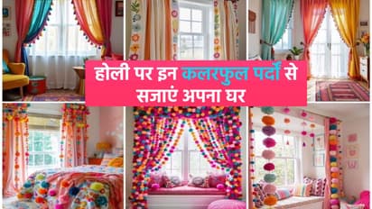 होली का रंगीन एहसास घर में लाने के लिए मल्टीकलर प्रिंटेड शीयर पर्दे एक बढ़िया ऑप्शन हैं। ये हल्के और ट्रांसपेरेंट फैब्रिक में आते हैं, जिससे सूरज की रोशनी अंदर आती है और कमरा ज्यादा रोशन दिखता है। गुलाबी, पीला, नीला और हरा जैसे शेड्स का कॉम्बिनेशन होली के वाइब को बढ़ाता है। यह स्टाइल लिविंग रूम और बालकनी के लिए एकदम सही है।