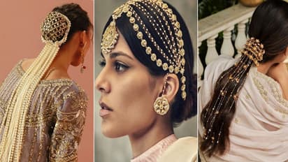 राजस्थानी और पंजाबी जूलरी इंस्पायर्ड हेयरस्टाइल आपको अल्ट्रा ट्रेडिशनल लेकिन मॉडर्न फील दे सकती है। स्लीक या मेसी बन बनाएं और उसमें कैप की तरह इसे कवर कर दें। ऐसे पर्ल हेयर लेयरिंग ब्रोच क्लिप उन लड़कियों के लिए बेस्ट है जो हेवी जूलरी नहीं पहनना चाहतीं लेकिन फेस और हेयर पर फेस्टिव इम्पैक्ट चाहती हैं।