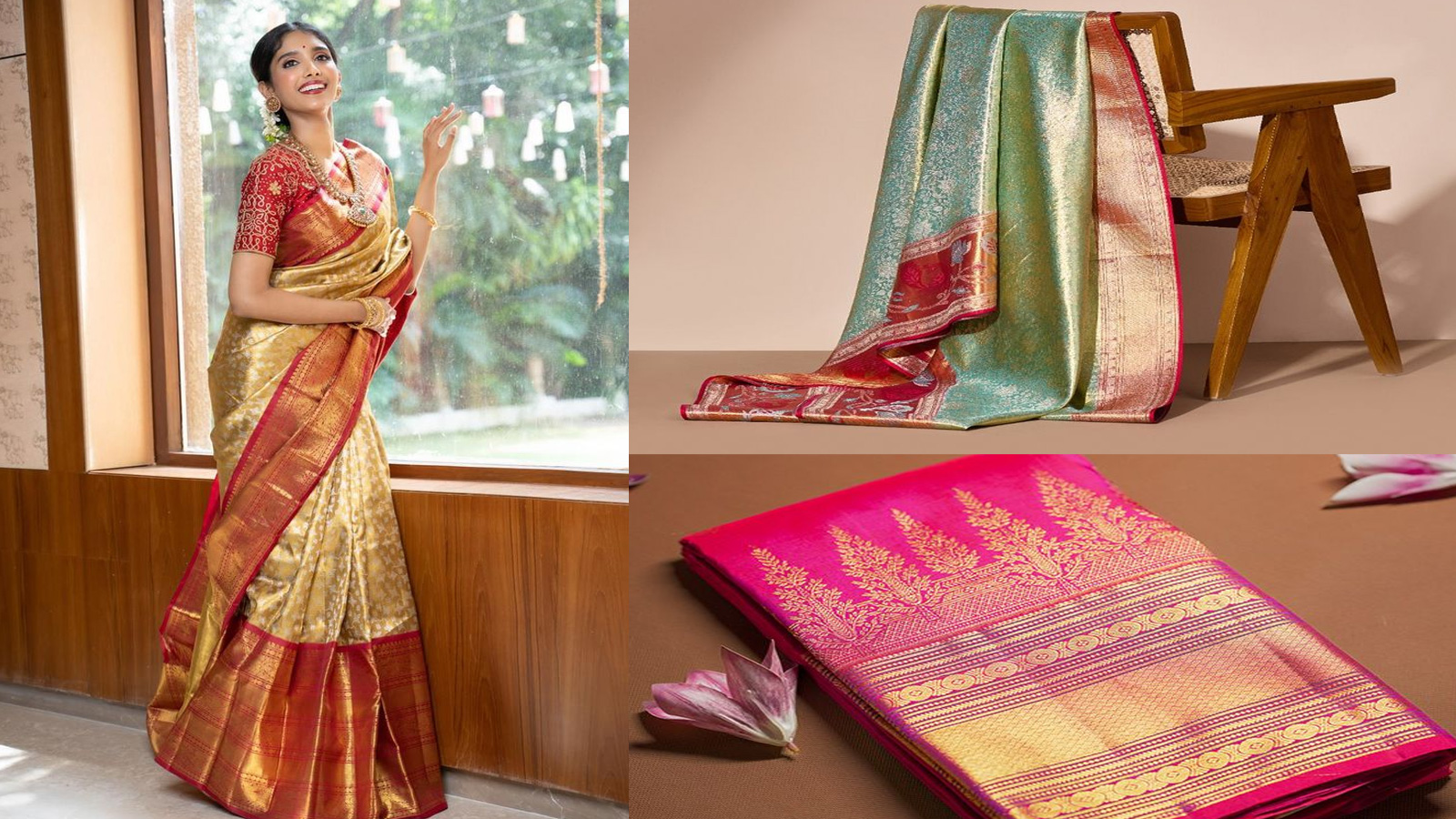 कांजीवरम साड़ी की जड़ें तमिलनाडु के कांचीपुरम शहर में हैं। ये साउथ इंडिया की सबसे प्रतिष्ठित और पवित्र मानी जाने वाली साड़ी है। पारंपरिक रूप से इसे मंदिरों में पुजारियों के वस्त्रों से प्रेरणा लेकर बनाया गया। वहीं बनारसी साड़ी का जन्म उत्तर भारत के वाराणसी (बनारस) में हुआ। यह मुगलकालीन शाही पोशाकों से इंस्पायर है और अक्सर दुल्हनों के ब्राइडल लुक में नजर आती है। देखा जाए तो दोनों के ऑरिजन में संस्कृति और परंपरा रची बसी है।