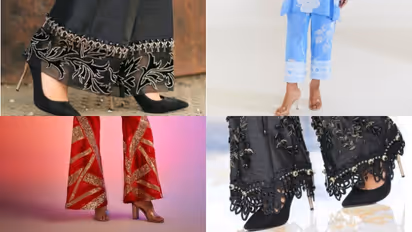 अगर कुर्ती हैवी है तो पैंट को सिंपल रखते हुए आप लेस वर्क मोहरी डिजाइन चुन सकती हैं। ये बेसिक लुक को स्टनिंग बनाती है। आप हैवी हील्स संग लुक कंप्लीट करें।