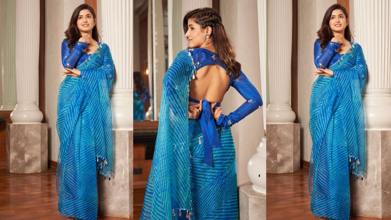 यह रॉयल ब्लू कलर की साड़ी ट्रेडिशन और एलीगेंस का परफेक्ट कॉम्बिनेशन है।