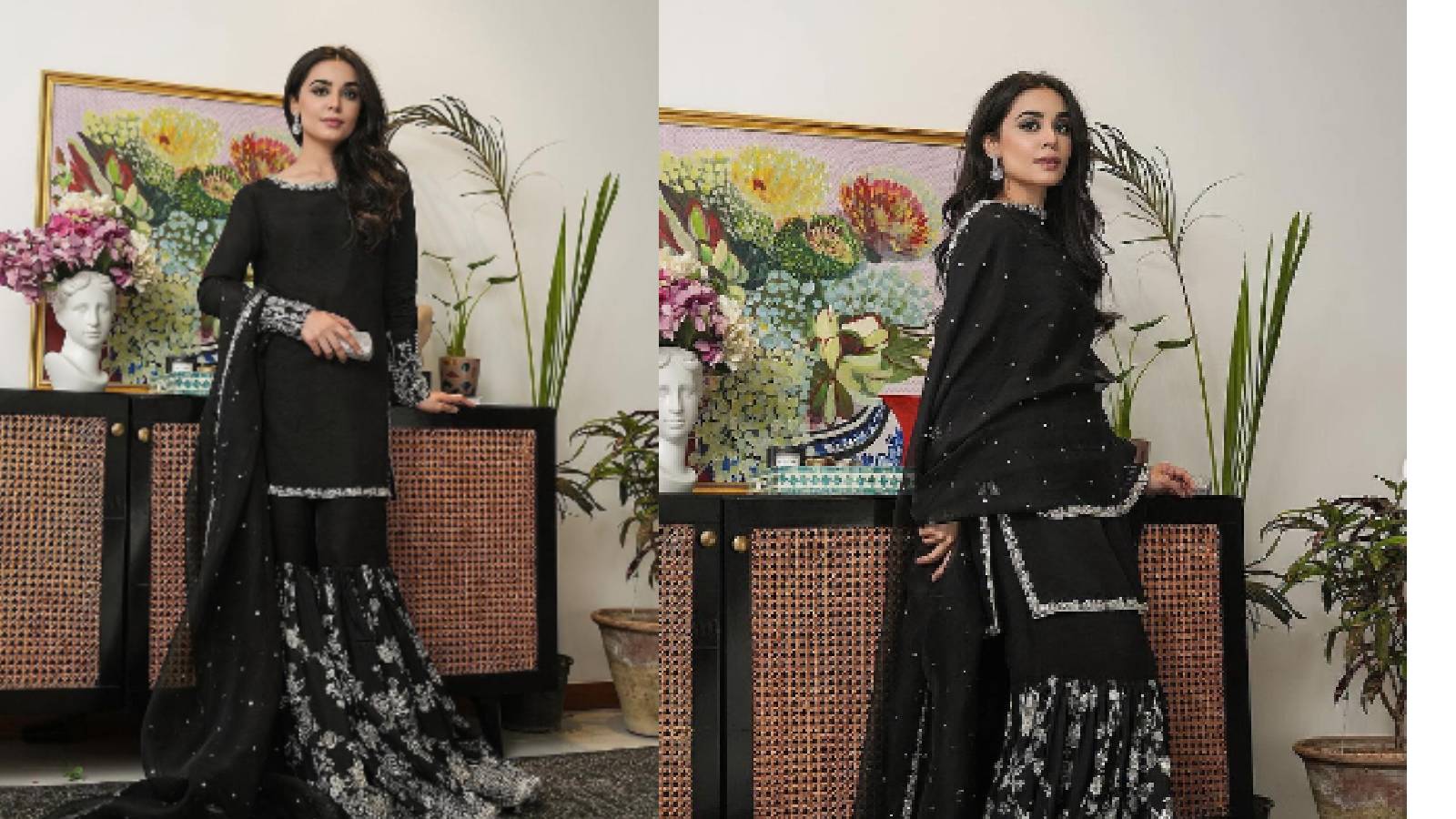 अगर आप शादी या संगीत सेरेमनी में स्टाइलिश और ट्रेंडी दिखना चाहती हैं, तो आपको ब्लैक शरारा सूट ज़रूर ट्राई करना चाहिए। सेक्विन, मिरर वर्क, या गोटा पट्टी के जुड़ने से यह और भी ग्लैमरस लगता है। यह सूट आपको मॉडर्न, कॉन्फिडेंट और फैशनेबल लुक देता है।