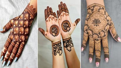हथेली के बीच गोल मंडला और उसके आसपास फूलों की डिटेलिंग बहुत एलिगेंट लगती है। यह डिजाइन मॉडर्न और ट्रेडिशनल दोनों लुक का खूबसूरत कॉम्बिनेशन है।