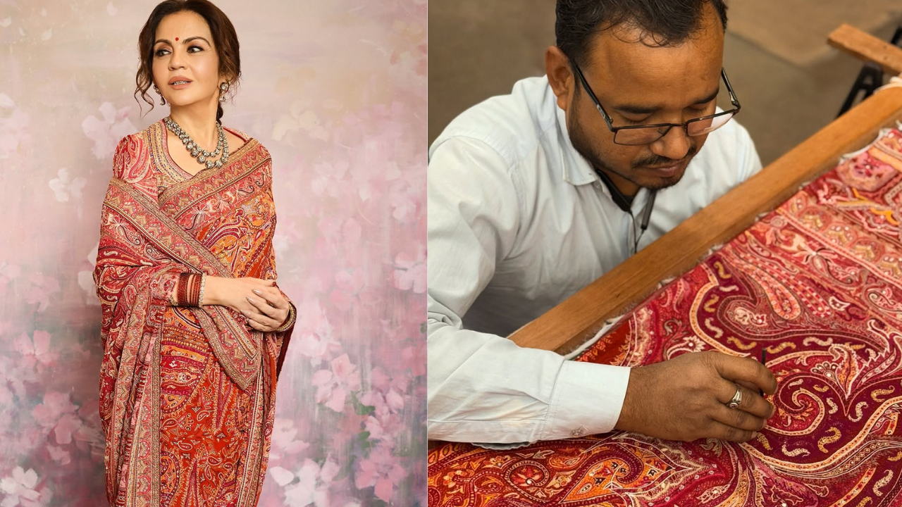 नीता अंबानी ने भारतीय विरासत को च्वाइस बनाते हुए परंपरागत कारीगरी और इंट्रीकेट बुनाई पर आने वाली साड़ी चुनी। जिसे बनाने में लगभग 1900 घंटे लगे। खासियत की बात करें तो ये कश्मीर से निकले जामावार शॉल की विरासत को मॉडर्न रूप में प्रस्तुत करती है। यहां पर आरी वर्क संग फ्रेंच नॉट्स दिए हैं, लेकिन सबसे ज्यादा ध्यान कश्मीर की फेमस और पारंपरिक कढ़ाई कशीदाकारी खींच रही है। नीता अंबानी ने अटायर को ओवरलिफ्ट करने के लिए मॉडर्न लेपर्ड कॉलर ब्लाउज चुना, जो ट्रेडिशनल+मॉडर्न वाइब दे रहा है।