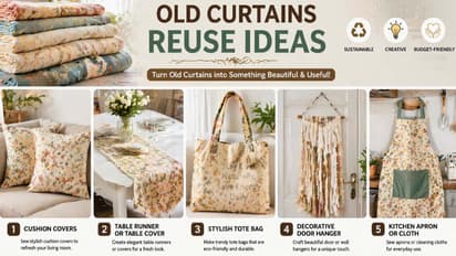 Old Curtains Reuse Idea: पुराने पर्दों को फेंकने के बजाय, आप उन्हें कई उपयोगी और स्टाइलिश चीजों में बदल सकते हैं जैसे कि कुशन कवर, टोट बैग और टेबल कवर। ये आसान DIY आइडिया आपके घर को एक नया और फ्रेश लुक देते हैं।