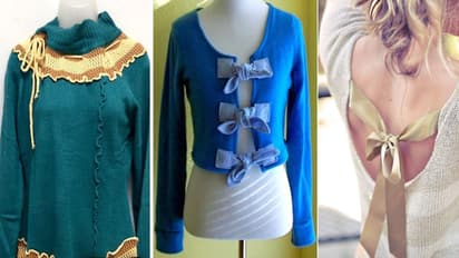पुराने स्वेटर के राउंड नेक या V-नेक पर लेस या छोटे-छोटे पर्ल सिल दें। इससे स्वेटर की लुक एकदम पार्टीरेडी और फेमिनिन लगेगी। अगर आप मिनिमल स्टाइल पसंद करती हैं, तो सिर्फ नेकलाइन पर पर्ल की सीधी लाइन लगा दें। इससे ऐसा दिखेगा जैसे आपने नया स्वेटर पहन लिया हो।