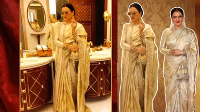 फैशन भले ही बदल जाए लेकिन आईकॉनिक रेखा जी का स्टाइल वैसा ही रहता है। ऐसा हम नहीं कह रहे बल्कि मशहूर फैशन डिजाइनर मनीष मल्होत्रा का ये मानना है। हाल ही में रेखा मनीष मल्होत्रा की सिल्वर गोल्ड विंटेज साड़ी में नजर आईं। एक्ट्रेस ने साड़ी को सिल्वर बुने हुए टिश्यू जरी चोली और ओढ़नी के साथ स्टाइल किया था। पारंपरिक जरदोजी कढ़ाई और हैंडमेड बटुआ रेखा के ओवरऑल साड़ी लुक को रॉयल लुक दे रहा था। टाइमलेस ग्रेस और भव्यता को एक साथ देखना हो तो रेखा के साड़ी कलेक्शन बेहतर उदाहरण हैं। आइए जानते हैं विंटेज साड़ी की खासियत और कीमत के बारे में।
