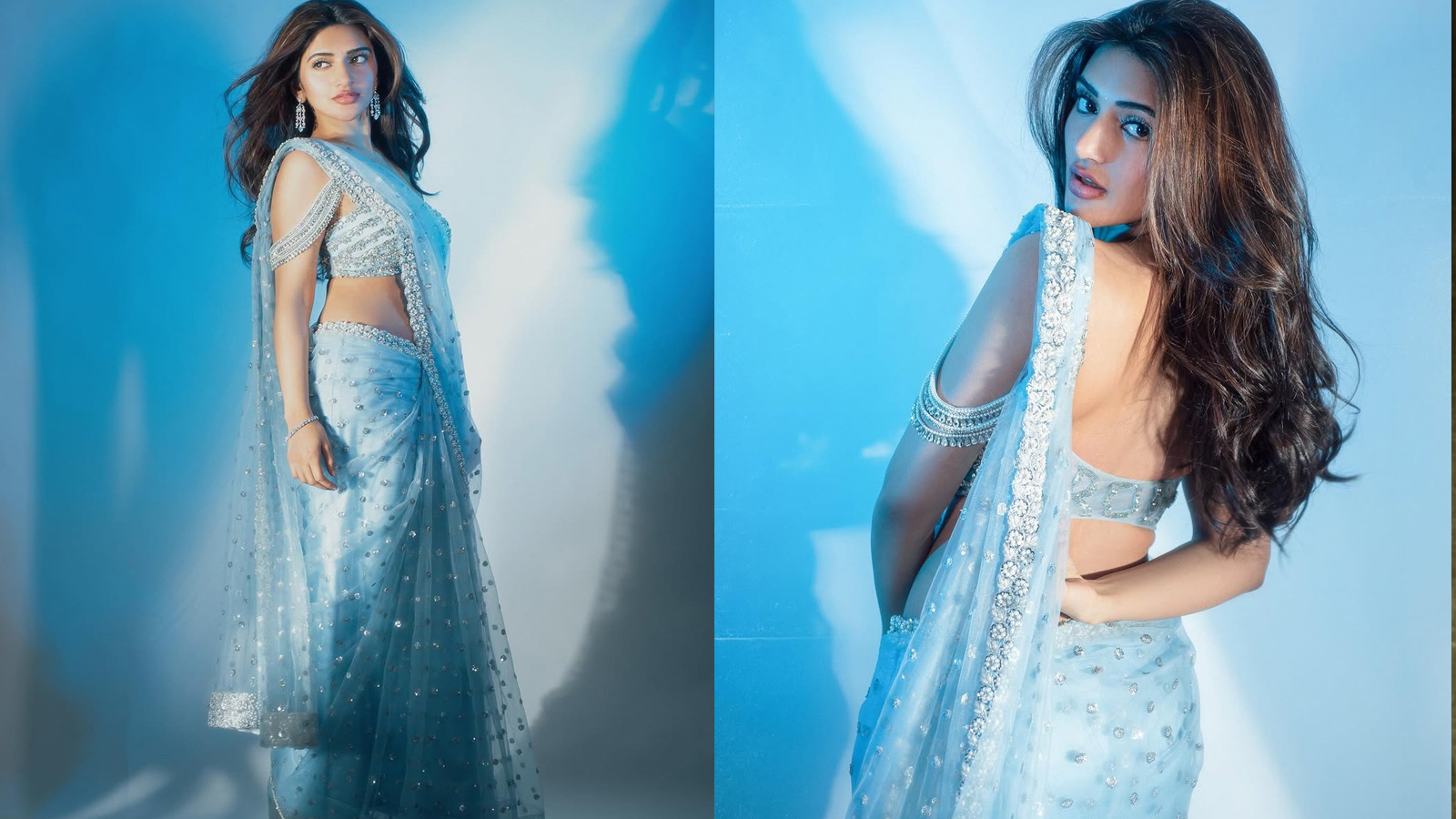 अगर आपको दोस्ती की शादी अटेंड करनी है या फिर ब्वॉयफ्रेंड के साथ डेट पर जाना…आप श्रीलीला की तरह स्काई ब्लू नेट की साड़ी ट्राई कर सकती हैं। साड़ी पर सिल्वर स्टोन का वर्क है जिसकी वजह से इसकी चमक बढ़ गई है। एक्ट्रेस ने साड़ी के साथ स्लीवलेस ब्लाउज पहना है जिस पर पर्ल का लेयर लगाया गया है। इस तरह के ब्लाउज आपको रेडीमेड मार्केट में मिल जाएगा। बात अगर अदाकारा के मेकअप की करें तो उन्होंने सटल मेकअप किया है। बालों को खुला रखा है। नग वाली इयररिंग्स से लुक पूरा किया है। इस तरह की साड़ी आपको मार्केट में 5000 रुपए के अंदर मिल जाएगी।