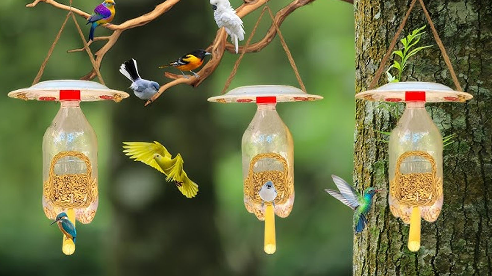 प्लास्टिक बोतल को बीच में छेद कर उसमें दाना डाल दें और नीचे पर बैठने के लिए लकड़ी या चम्मच फिट करें। बोतल को किसी पेड़ या रेलिंग से लटकाएं।सुबह-शाम पक्षियों को दाना खिलाएं। यह प्रकृति के लिए एक छोटा पर नेक काम होगा।