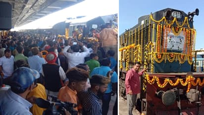 ट्रेन के ड्राइवरों और अन्य स्टाफ का फूल माला से किया स्वागत