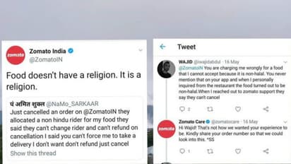 दरअसल, जोमैटो ने मंगलवार को एक कस्टमर की शिकायत सुनने से इनकार कर दिया था। मामला मध्यप्रदेश के जबलपुर का था। स्थानीय युवक अमित शुक्ला ने डिलीवरी बॉय के हिंदू ना होने की वजह से ऑर्डर कैंसिल करने की बात कही थी। उसने ट्वीट किया था, ''जोमैटो पर खाने का ऑर्डर कैंसिल कर दिया क्योंकि उन्होंने एक गैर हिंदू को ऑर्डर देने के लिए भेजा था। कंपनी ने कहा कि वह डिलिवरी करने वाले शख्स को बदल नहीं सकते, साथ ही ऑर्डर कैंसिल करने पर मुझे रिफंड भी नहीं दिया जा सकता।'' इस पर जोमैटो ने कहा था- खाने का कोई धर्म नहीं होता। इस मामले में उबर ईट्स ने भी जोमैटो का साथ दिया था।
