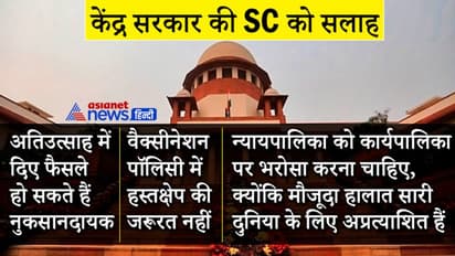 कोरोना की दूसरी लहर से जूझ रहे भारत की स्वास्थ्य सेवाओं में सुधार के लिए सुप्रीम कोर्ट को भी दखल देना पड़ा है। बात ऑक्सीजन की किल्लत की हो या दवाइयों या अन्य मेडिकल सुविधाओं की...या फिर वैक्सीनेशन का मुद्दा, सुप्रीम कोर्ट लगातार इन सभी मामलों में सुनवाई कर रहा है। इसे लेकर केंद्र सरकार ने एक हलफनामा पेश किया है। इसमें कहा गया है कि सुप्रीम कोर्ट के अति उत्साह में दिए फैसले से नुकसान हो सकता है। न्यायपालिका को कार्यपालिका पर भरोसा करना चाहिए, क्योंकि कोरोना सारी दुनिया के लिए एक नया संकट है।