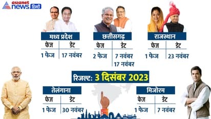 Assembly Election Dates. चुनाव आयोग ने 5 राज्यों के विधानसभा चुनावों का ऐलान कर दिया है। इस दौरान मुख्य चुनाव आयुक्त राजीव कुमार सहित कई वरिष्ठ अधिकारी मौजूद रहे। मुख्य चुनाव आयुक्त ने 5 राज्यों के तारीखों का ऐलान किया। मिजोरम 7 नवंबर को 1 फेज में वोटिंग होगी। छत्तीसगढ़ 7 नवंबर और 17 नवंबर को दो फेज में वोटिंग होगी। मध्य प्रदेश में 17 नवंबर को एक फेज में वोटिंग होगी। राजस्थान 23 नवंबर 1 फेज में वोटिंग होगी। तेलंगाना में 30 नवंबर को 1 फेज में वोटिंग होगी। 03 दिसंबर को सभी 5 राज्यों के चुनावी रिजल्ट घोषित किए जाएंगे।