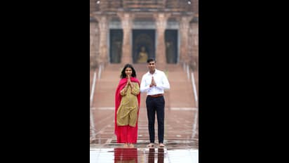 ऋषि सुनक और उनकी पत्नी अक्षता ने अक्षरधाम मंदिर में आरती की।