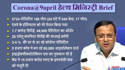 नई दिल्ली. देश में कोरोना के कुल 5734 कोरोना संक्रमित मामलों की पुष्टि हुई है। स्वास्थ्य मंत्रालय के संयुक्त सचिव लव अग्रवाल ने प्रेस कॉन्फ्रेंस कर बताया, देश में कोरोना से कुल 166 मौत हो चुकी है। अब तक 473 लोग ठीक और अस्पताल से डिस्चार्ज हो चुके हैं। पिछले 24 घंटों में 549 नए मामले सामने आए हैं और 17 मौतें हुई हैं। हरियाणा के करनाल जिले में एडॉप्ट ए फैमिली अभियान के तहत 13000 जरूरतमंद परिवारों को 64 लाख रुपए की मदद दी जा रही है।