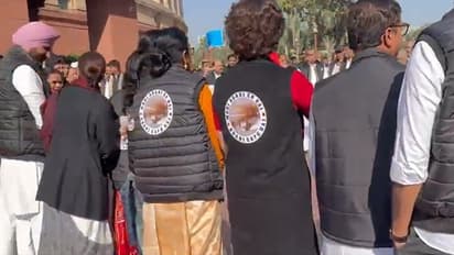 नई दिल्ली। गौतम अडानी पर लगे रिश्वतखोरी के आरोपों को लेकर कांग्रेस का संसद में विरोध प्रदर्शन जारी है। गुरुवार को कांग्रेस के नेतृत्व में विपक्षी दलों के गठबंधन INDIA ब्लॉक के सांसदों ने विरोध प्रदर्शन और नारेबाजी की। विपक्षी दलों के सांसद काले रंग की जैकेट पहने हुए थे। इसपर 'मोदी-अडानी एक हैं' लिखा गया था। इस दौरान विपक्षी गठबंधन में फूट भी दिखी।