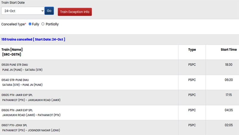 5- इसे सिलेक्ट करते ही आपके सामने उस दिन की पूरी तरह कैंसिल और आंशिक रूप से कैंसिल ट्रेनों की लिस्ट सामने आ जाएगी।