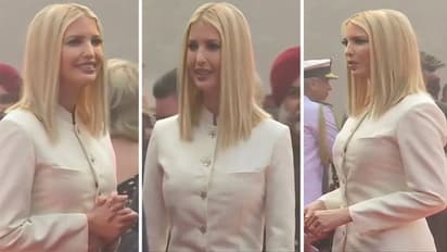नई दिल्ली. अमेरिकी राष्ट्रपति डोनाल्ड ट्रंप की बेटी इवांका मंगलवार को राष्ट्रपति भवन में परंपरागत स्वागत के अवसर पर भारतीय डिजाइनर द्वारा डिजाइन किया गया भारतीय परिधान पहनकर आईं।