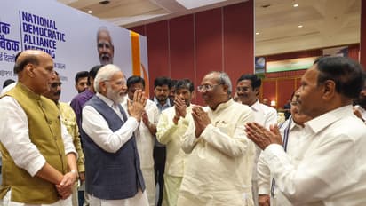 NDA Meeting Delhi: बीजेपी के नेतृत्व वाली एनडीए यानी नेशनल डेमोक्रेटिक अलायंस की मीटिंग दिल्ली में शुरू हो चुकी है। पीएम नरेंद्र मोदी मीटिंग की अध्यक्षता कर रहे हैं। मीटिंग हाल में पहुंचने पर प्रधानमंत्री हर किसी से गर्मजोशी से मिलते नजर आए।