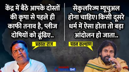 प्रकाश राज के ट्वीट पर पवन कल्याण ने करारा जवाब देते हुए रिप्लाई किया। पवन कल्याण ने कहा- मैं हिंदुत्व की पवित्रता और खाने की चीजों में मिलावट की बात कर रहा हूं। मैं इन मामलों में क्यों न बोलूं? मैं आपका सम्मान करता हूं, लेकिन जब बात सेकुलरिज्म की हो तो ये म्यूचुअल होना चाहिए। फिल्म इंडस्ट्री या किसी को भी तिरुपति मंदिर की पवित्रता के मुद्दे को हल्के में नहीं लेना चाहिए। मेरे लिए सनातन धर्म सबसे अहम है और इसकी जिम्मेदारी हर हिंदू को लेनी चाहिए। किसी दूसरे धर्म में ये घटना होती तो अब तक बड़ा आंदोलन खड़ा हो जाता। बता दें कि पवन कल्याण ने कहा है कि तिरुमाला लड्डू प्रसादम को अपवित्र करने की जो साजिश हुई है, उसका प्रायश्चित करने के लिए वो दशावतार वेंकटेश्वर स्वामी मंदिर में 11 दिन 'प्रायश्चित्त दीक्षा' करेंगे।