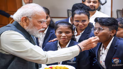 PM मोदी ने T20 वर्ल्ड कप जीतने वाली भारतीय महिला ब्लाइंड क्रिकेट टीम से मुलाकात की, उन्हें मिठाई खिलाई और जीत की बधाई दी। खिलाड़ियों ने PM को साइन किया हुआ बैट दिया।