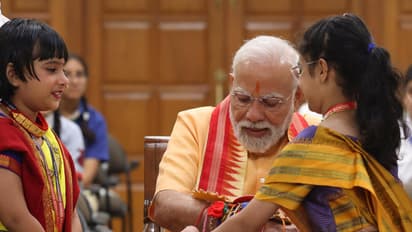 Raksha Bandhan: 5 तस्वीरों में देखें कैसे पीएम मोदी ने मनाया रक्षाबंधन, छोटी-छोटी बच्चियों से बंधवाई राखी