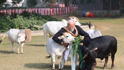 Makar Sankranti: प्रधानमंत्री नरेंद्र मोदी ने खिचड़ी पर गायों को कराया भोजन, देखें फोटोज
