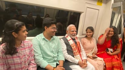 मेट्रो ट्रेन में नरेंद्र मोदी ने छात्रों और महिलाओं से बातचीत की। उन्होंने आम यात्री की तरह मेट्रो की सवारी।
