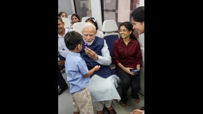 मेट्रो की सवारी के दौरान नरेंद्र मोदी ने बच्चों को चॉकलेट दिए। पीएम के हाथ से चॉकलेट पाकर बच्चों के चेहरे खिल उठे।